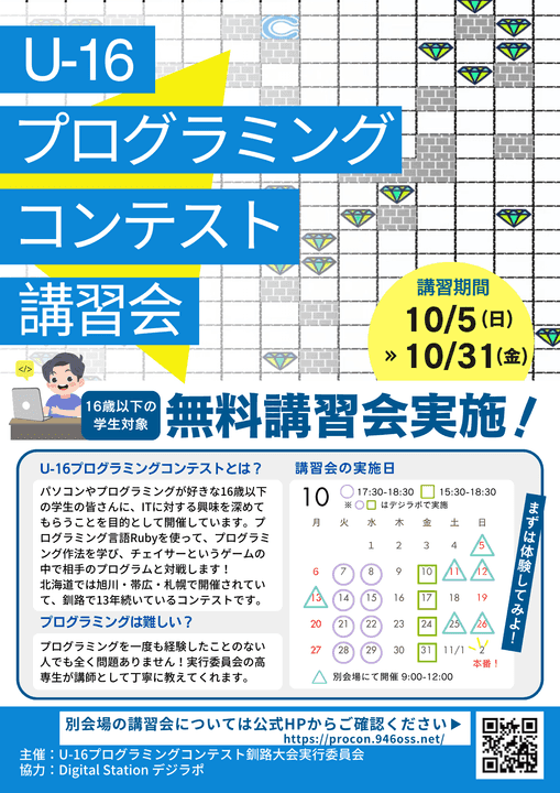 第13回U-16プログラミングコンテスト釧路大会 講習会のご案内