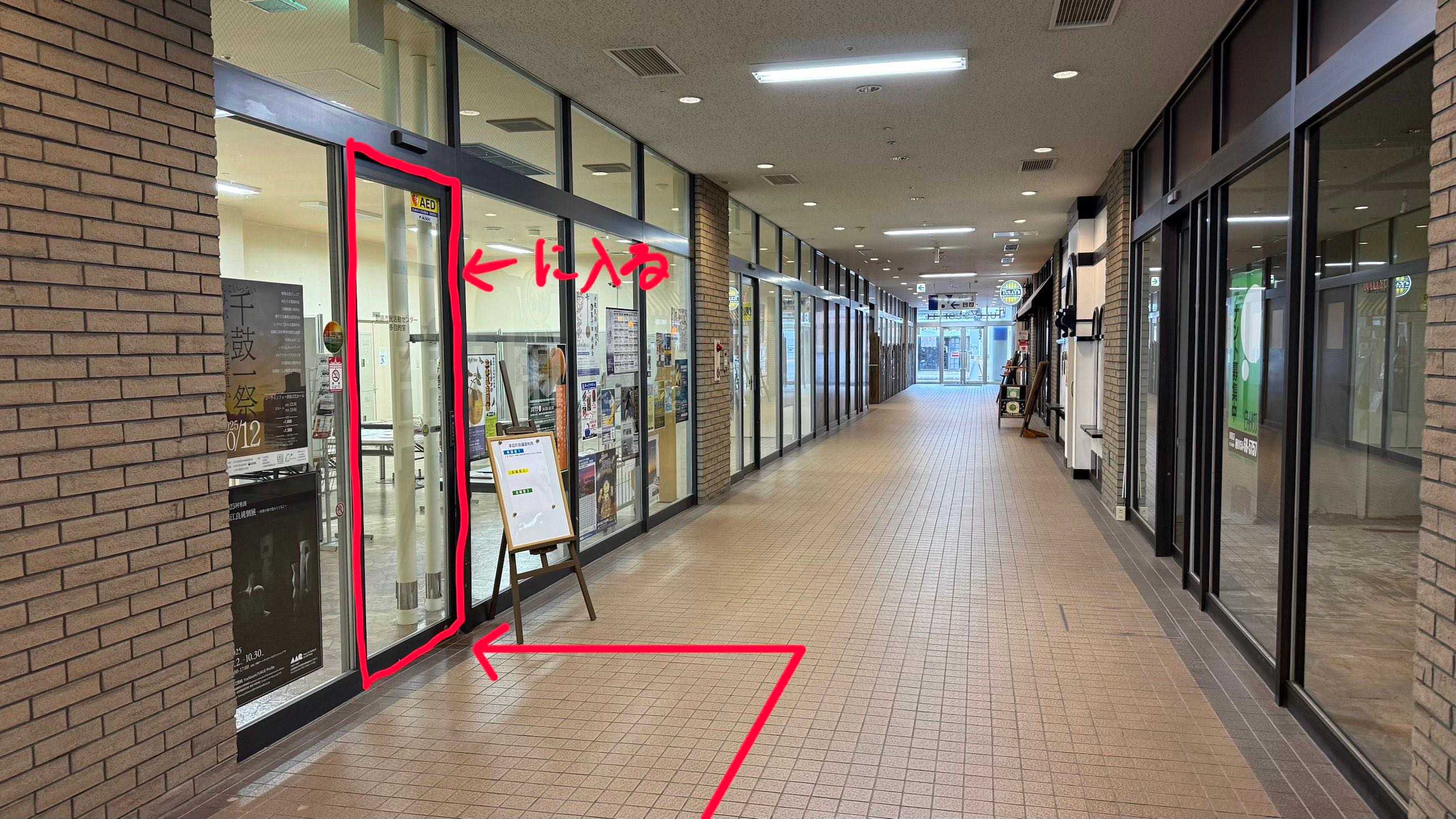 - 左手に「釧路市民活動センター 多目的室」という文字が書かれている入り口があるので,そこに入ります.