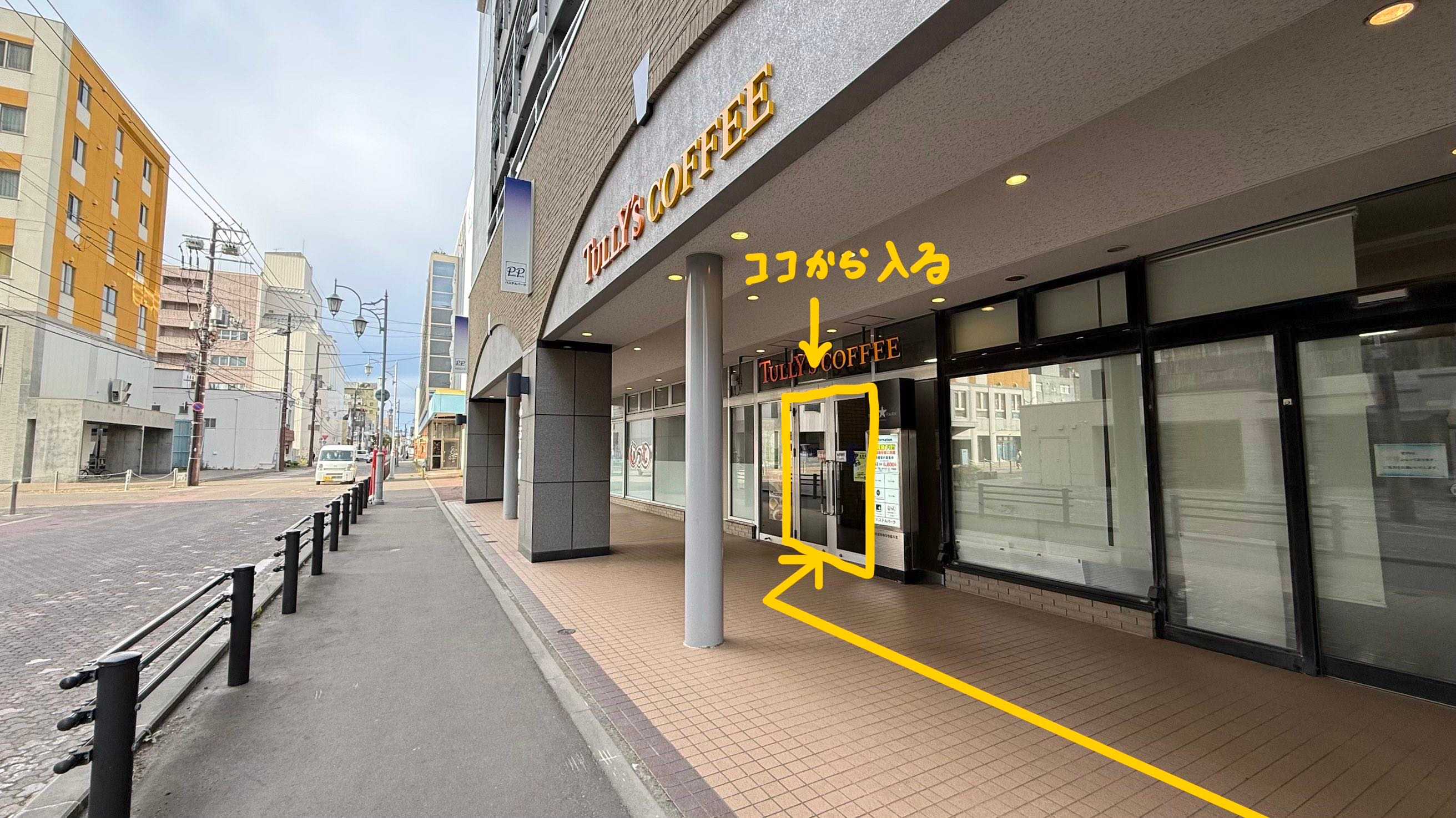 - わっとの建物に行き,TULLY’S COFFEE と書かれた入り口から入ります.